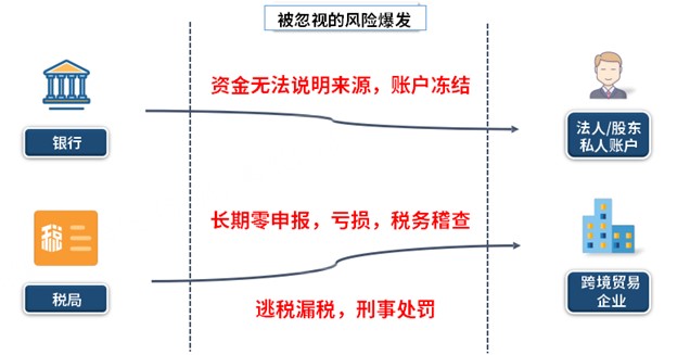 需要資金回流時(shí),無法說明資金來源,造成賬戶凍結(jié);長期零申報(bào),虧損,導(dǎo)致稅務(wù)稽查;涉嫌逃稅漏稅,受到刑事處罰。