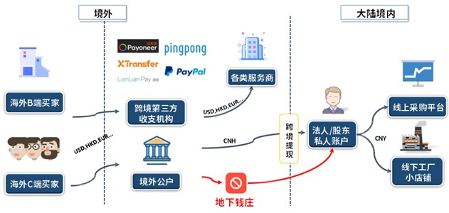 貨物出口后,部分企業(yè)觸犯法律違規(guī)操作,選擇非法金融機(jī)構(gòu)進(jìn)行資金回流。在這里提醒大家,無論是外貿(mào)企業(yè)還是跨境電商,合法合規(guī)都是經(jīng)營的前提,切忌一時(shí)心存僥幸,觸犯法律紅線!